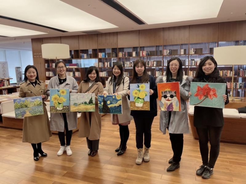油画创作体验,培养审美情趣。机关和区域公司女职工以“巾帼心向党 奋斗新征程”为主题,开展了油画创作体验活动。本次活动邀请专业油画老师为大家介绍了油画入门基础知识,讲解颜料配比并亲自演示构图、上色等笔法技巧。在简单的学习后,大家选择了自己喜爱的绘画主题,开始油画作品。在创作过程中,大家相互帮助,相互学习,相互欣赏、品评作品,进一步加深了彼此之间的了解和沟通,增进了团队凝聚力和向心力。