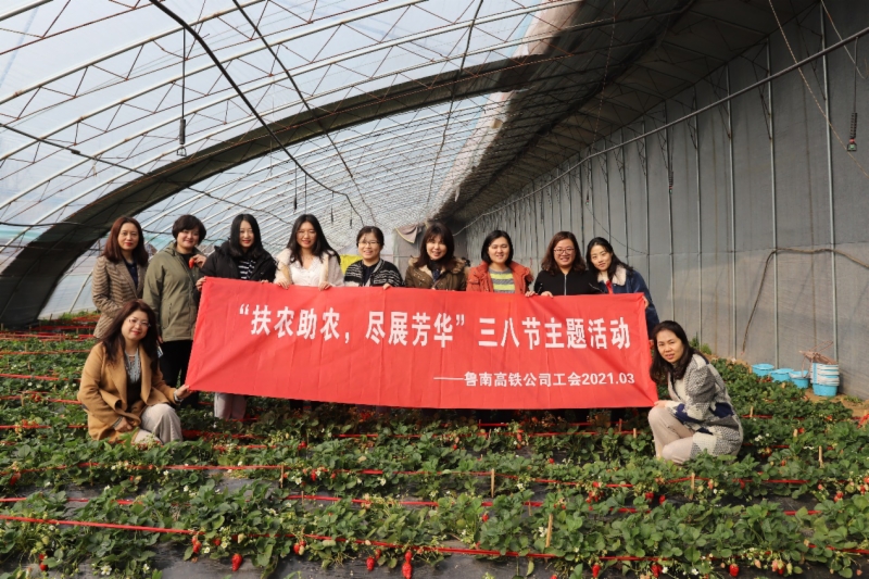 采摘草莓挖野菜,扶农助农展风采。鲁南高铁公司女职工乘车来到董家街道柿子村,在农户指导帮助下,卷起裤腿,脚踩泥泞,帮助农户采摘农作物果实。通过这次扶农助农活动,女职工切身感受到了田间劳作的艰辛和农民创收的不易,用实际行动展现了团结、有爱、互助精神。