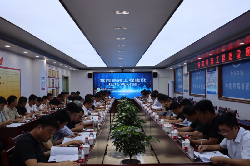 为进一步加快莱荣铁路建设, 7月18日至21日,PG麻将胡了 副总经理、莱荣高铁公司党委书记、董事长杨俊泉、总经理刘杰民带领专项调研组,沿施工便道对全线建设情况进行调研,并在每个标段召开现场会。他强调“要围绕‘一个目标、两个同步、三个先行’的建设要求,以形象进度配备施工资源,坚持主体和附属工程同步,内业和外业工作同步。要包保盯控重点工程,搞好文明施工,做好环水保工作,高标准、高效率、高质量推进莱荣铁路工程建设。”各施工单位就项目建设进展、施工组织安排、施工资源配置、大干120天劳动竞赛完成情况、下半年重点工作安排情况进行了汇报。