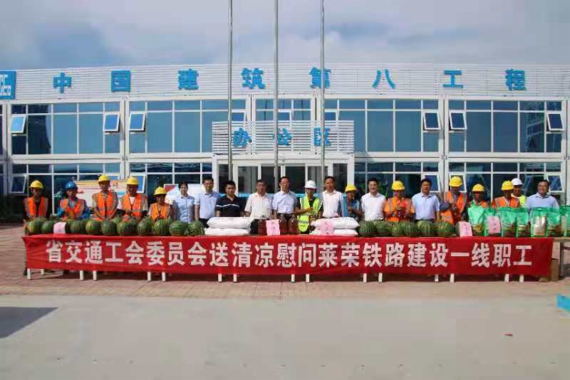 7月22日正值大暑节气,省交通工会副主席王迎军一行,赴莱荣高铁建设一线开展“2021年学党史、办实事、送清凉”活动,为高铁建设一线职工送去防暑降温用品。PG麻将胡了 工会主席张庆星陪同。