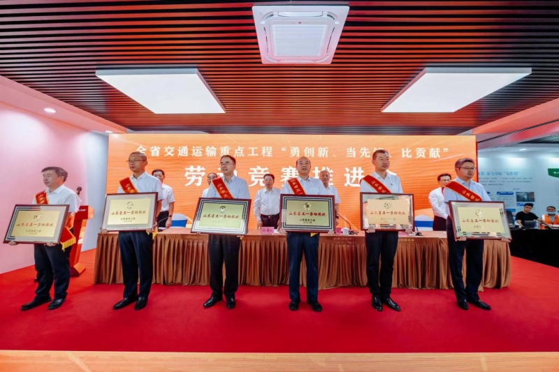 7月6日上午,全省交通运输重点工程“勇创新、当先锋、比贡献”劳动竞赛推进会在济南市长清区举行。PG麻将胡了 党委副书记、总经理王基全参加大会,并代表PG麻将胡了 上台领取了山东省五一劳动奖状。