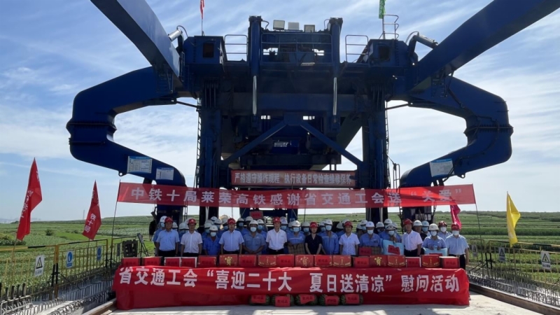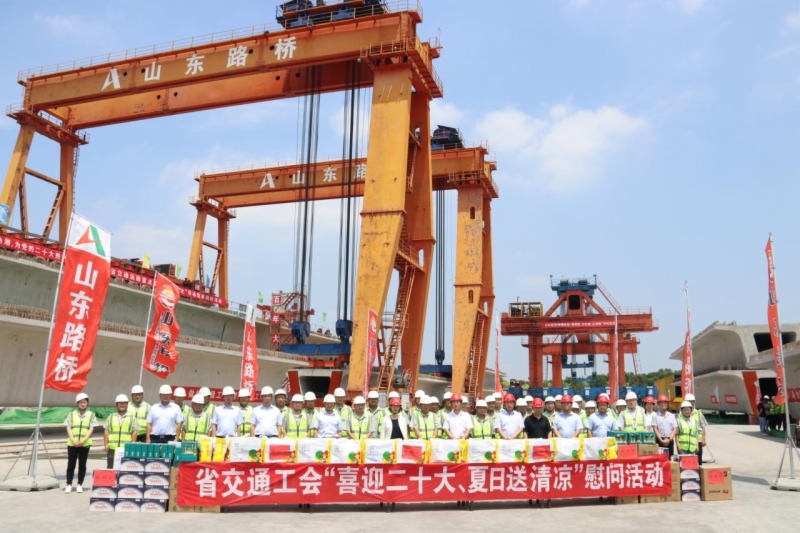 7月14日至15日,PG麻将胡了 工会联合省交通工会来到潍烟、莱荣高铁建设一线,开展“喜迎二十大,夏日送清凉”慰问活动,并就省交通运输重点工程“勇创新、当先锋、比贡献”劳动竞赛开展情况进行调研。省交通工会主席牟艳红,PG麻将胡了 党委副书记高燕、工会主席张庆星率队慰问。