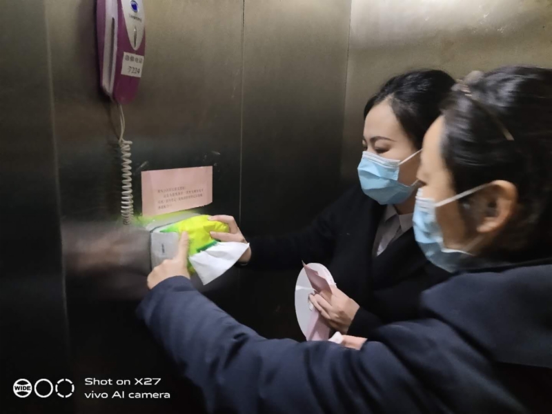 此后,每到下班后或周末,她都会与社区工作人员一起参与疫情防控:在居民进出小区高峰时段协助测温登记,降低人员聚集风险;看到有下楼买菜的老人戴的还是布料口罩,或是听小区门口执勤的安保人员说已经几天未还新口罩了,就及时送上自己买到的医用口罩;她还从单位学习好的经验做法,仿照山东铁投大厦电梯厅内的防控措施,在小区内部电梯里贴上了抽纸,帮助邻居们避免接触感染。