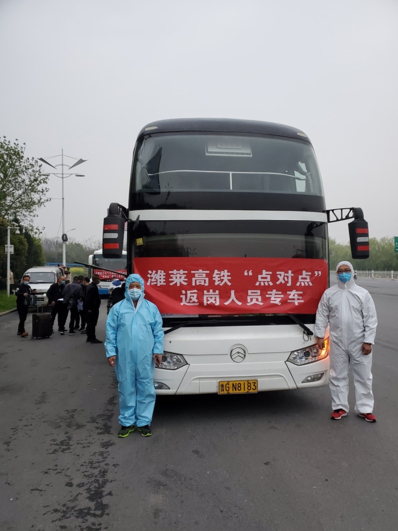 随着疫情防控形势不断好转,潍莱高铁复工复产速度加快。在济青高铁公司协调下,承担潍莱高铁四电工程的中铁武汉电气化局PG麻将胡了 潍莱高铁项目部,主动与潍坊市政府、应急办、防疫办、交通局等相关职能部门沟通,开出了首趟复工复产“点对点一站式”直达大巴车,保障复工人员顺利返岗,解决了企业用工荒,也为地方经济建设复苏注入了“强心剂”,实现了员工、企业、政府的互利多赢。
