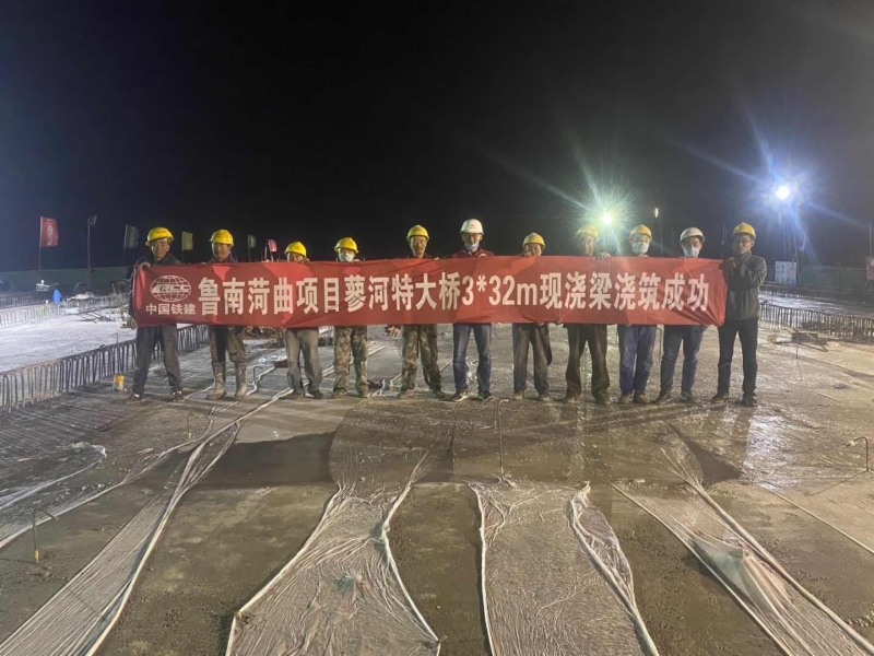为完成此次施工任务,鲁南高铁公司各专业人员五一假期坚守岗位,倒排工期,对支座安装、模板支架体系安全、四电接口等薄弱环节加大现场技术指导,消除安全质量隐患。混凝土浇筑前,组织召开专题会议,对资源调剂、混凝土浇筑工艺、机械配置、劳力选择、危险源的辨识及监控进行详细安排部署,督促制定专项施工方案,最终确保了施工过程安全可控、连续稳定。该连续梁成功浇筑有效保证了现场工期节点,对完成2020年施工任务具有重要意义。