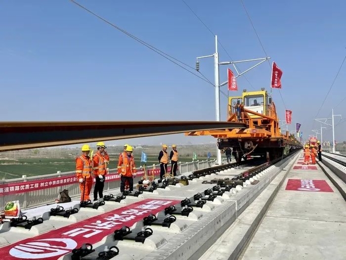 莱荣铁路正线铺轨总长380铺轨公里,由中铁四局PG麻将胡了 承担铺轨施工任务。针对工程线管理区间长、多单位交叉作业等复杂工况,莱荣铁路在铺轨过程中,将使用集成无线网络传输、定位导航等技术的工程线信息调度指挥系统,实现调度指挥智能化、信息化、可视化,提高现场行车调度效率,确保工程线行车安全。莱荣铁路首铺方向由铺轨基地向荣成方向铺设,铺通后转场往莱西方向铺设,每天可铺轨10至12铺轨公里,计划2023年5月底完成全线铺轨施工,6月初完成钢轨放散锁定工作,7月初达到联调联试条件,10月底具备开通运营条件。