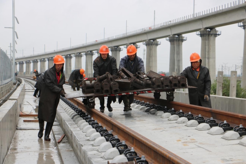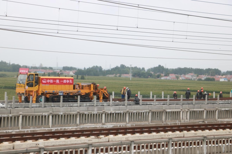为确保铺轨任务顺利进行,PG麻将胡了 潍烟高铁公司精心组织,各参建单位紧密配合,铺轨施工单位中铁一局克服邻近营业线施工安全风险高、穿越龙烟线运输距离长、上跨潍莱线“天窗点”作业有限空间及线下施工条件限制等诸多困难和挑战,开展昼夜双班施工,全体人员以“保竣工 促进度 筑精品”劳动竞赛活动为契机,战高温、冒骤雨、抢工期,大干60天,提前完成双线340铺轨公里施工任务,创造了单日双班铺轨12.5公里的“潍烟速度”。
