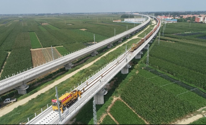 8月28日清晨,伴随着牵引车一声长笛,潍烟高铁蓬莱至昌邑段最后一对500米长钢轨在昌邑站4号岔前稳稳落槽。至此,由PG麻将胡了 投资建设、中铁一局承揽全线铺轨施工任务的潍烟高铁双线铺轨到达与潍莱高铁接轨站昌邑站铺轨起点,标志着蓬莱至昌邑段正线铺轨全部完成,提前2天实现首铺方向正线长轨贯通的节点目标。