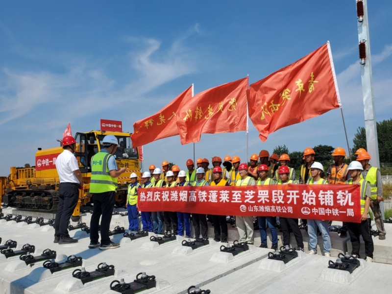 9月1日,在完成蓬莱至昌邑段正线铺轨后,潍烟高铁铺轨机组在蓬莱市站顺利实现向烟台方向调头,正式开始蓬莱至芝罘段长轨铺设。