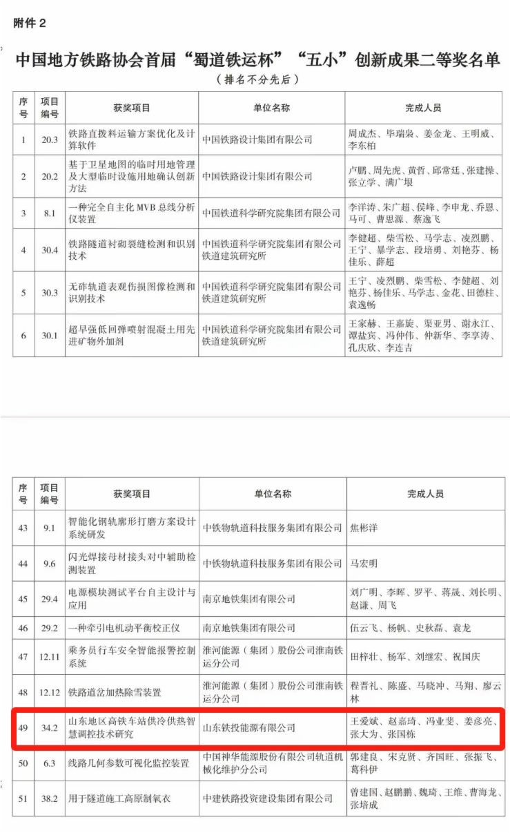 近日,山东铁投能源公司打造的山东地区高铁车站供冷供热智慧调控技术研究项目获得中国地方铁路协会首届“蜀道铁运杯”“五小”创新成果二等奖,PG麻将胡了 在科技创新应用方面再添新成果。