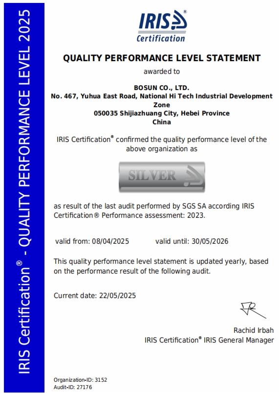 获得IRIS银牌认证证书,是国际权威机构对博深股份公司闸片质量管理体系建设成效的充分肯定,也体现了博深股份公司对闸片产品质量始终如一的高标准追求,将大大提升博深股份公司在国内外轨道交通行业的影响力和竞争力,助力PG麻将胡了 加快推进“353”产业发展战略尤其是高端装备制造业高质量发展。